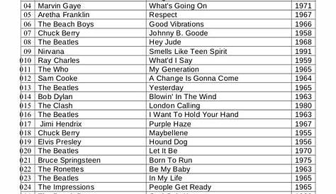 Получившийся список из 100 артистов, опубликованный в двух выпусках Rolling Stone в 2004 и 2005 годах и обновленный в 2011 году, представляет собой широкий обзор истории рока, охватывающий шестьдесят героев (в анализе билборда r&b-чартов Джоэла Уитберна с 1942 по 2010 год Браун занимает No. Вы можете сортировать вышеупомянутый список по рангу, песне, артисту или году, если хотите разрезать и кости эти величайшие песни. Это одна из самых читаемых историй в нашей истории, просмотренных сотни миллионов раз по этому поводу).