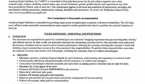 American Eagle Sales Associate Форма заявки скачать бесплатно