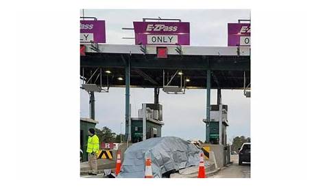 Перевернутые блоки автомобилей взимают плату за проезд по автостраде в Барнегате NJDOT