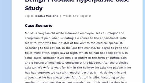 Benign Prostatic Hyperplasia Case Study Пример бесплатного эссе