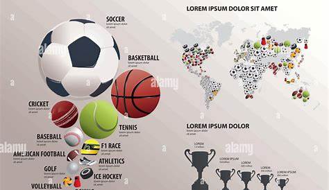 Инфографика двенадцати самых популярных видов спорта в мире, карта мира