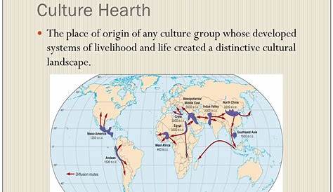 Это относится к важной концепции распространения идей из одной области в другую (диффузия). Культурный очаг относится к географической области, где инновации, идеи и культурные практики берут свое начало до распространения. См. руководящие принципы оценки и образцы для студентов.