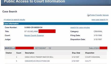 Публичные записи, которые не доступны в Интернете, доступны из суда округа Марикопа с юрисдикцией дела. Получить копии судебных записей. Для онлайн-записей суда информация включает имя преступника, доб, обвинения, сроки суда.