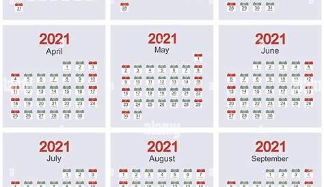 Ежемесячный шаблон календаря на 2021 год с ежедневной датой. Неделя начинается на