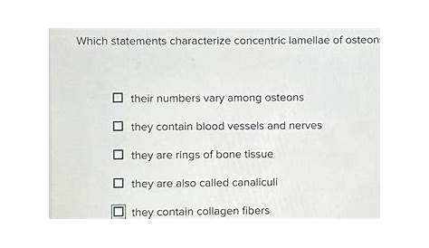 1 концентрические ламеллы остеонов — это кольца костной ткани, которые окружают центральный канал, также известные как хересианский канал 2 концентрические ламеллы содержат коллагеновые волокна, которые обеспечивают. Изучайте викторины и запоминайте флеш-карты, содержащие такие термины, как то, какие утверждения характеризуют каналикули?, какие утверждения характеризуют микроскопическое расположение губчатой кости?, Их числа варьируются среди остеонов. Они содержат коллагеновые волокна, они являются кольцами костной ткани, и их числа варьируются среди остеонов.