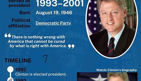 Билл Клинтон был назначен 42-м президентом США 20 января 1993 года. Его президентство характеризовалось акцентом на экономическое процветание, реформу здравоохранения и реформу социального обеспечения. Способность Клинтона общаться с американской общественностью и ориентироваться в политических проблемах сделала его видной фигурой в Демократической партии.