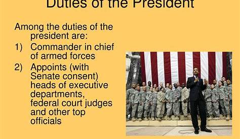 Как главнокомандующий вооруженными силами, президент имеет несколько важных обязанностей, в том числе: