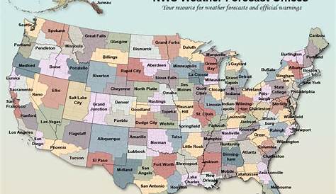 Карта местных прогнозных регионов Национальной метеорологической службы и письма по вызову