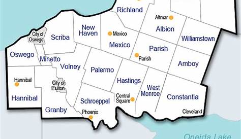 Карта округа Освего, Нью-Йорк, где расположены города, население