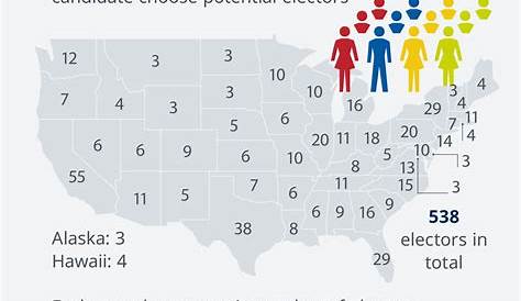 Каждому штату на основе его представительства в Конгрессе выделяется ряд выборщиков, в состав которых входят как Сенат, так и Палата представителей. Всего в коллегии выборщиков входит 538 выборщиков, и для победы на президентских выборах требуется большинство в 270 голосов выборщиков.