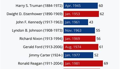 В первые годы существования Соединенных Штатов президенты были, как правило, моложе, а Джордж Вашингтон вступил в должность в 57 лет. Однако в последние десятилетия наблюдается заметная тенденция к пожилым президентам. Например:
