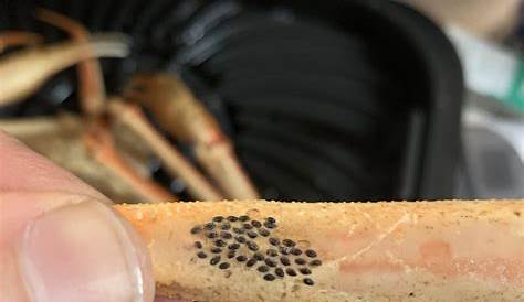 Крошечные черные пятна на ногах краба — это яйца морской пиявки, и они обычно погибают, когда краб хранится на льду, а затем готовится.