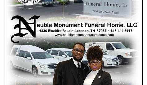 Владелец/похоронный директор 1330 Bluebird Road ∙ Ливан, тн 37087 ∙ 615.444.3117 www.neublemonumentfuneralhome.com сканирование памятника с помощью похорон. 2 830 лайков · 1023 разговора об этом · 550 были здесь. Если вы готовы обсудить варианты или просто задать вопросы о наших услугах, пожалуйста, позвоните нам по телефону (615) 444.