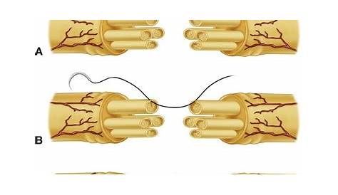 Концы поврежденного нерва выровнены и сшиты вместе с помощью нежных швов. Это термин, который используется для хирургического шва нерва, который разделен. Исследование с висклетом и запоминание карточек, содержащих такие термины, как нейрорхафия, сплетение, синапс и многое другое. Нервное волокно упоминается.