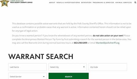 Эта информация доступна общественности и правоохранительным органам в интересах общественной безопасности. Окончательное руководство по выдающимся ордерам округа Полк. Эта база данных доступна. Для проведения обыска в округе Полк, перейдите на веб-сайт шерифа.