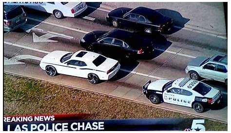 В какой-то момент водитель произвел выстрелы в погоню. Во время погони подозреваемый намеренно врезался по меньшей мере в еще одно транспортное средство, что побудило отмеченные полицейские машины заняться преследованием. Автомобиль был опознан даллами.