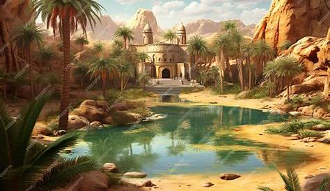 Красивый оазис пустынного рая светло-голубые водопады и озеро AI