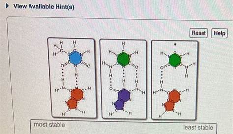 Чтобы ранжировать следующие пары оснований по их стабильности от наиболее устойчивых к наименее стабильным, мы смотрим на количество водородных связей, которые образуются каждой парой оснований. Больше водородных связей обычно означает больше стабильности. Чем больше водородных связей может образовываться пара оснований, тем более стабильна она. Есть 2 шага для решения этой.