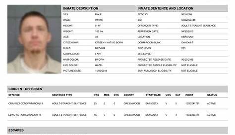 В отчете о поиске заключенных в Южной Каролине вы обычно можете найти такие детали, как полное имя заключенного, номер удостоверения личности, текущее местоположение объекта, информацию о приговоре, включая правонарушения.