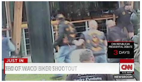Видео наблюдения, снятое в день массовой перестрелки внутри техасского ресторана, показывает хаос, когда сотни байкеров бегут и какой-то открытый огонь. Байкеры из по меньшей мере пяти конкурирующих банд напали друг на друга с оружием, ножами, латунными костяшками, клубами и мотоциклетными цепями в спортивном баре и гриль в Близнецовых пиках. Cnn получил видео и изображения хаоса во время и после драки. Через три года после смертельной перестрелки байкерской банды на стоянке ресторана Близнецовых пиков в Вако, штат Техас, были найдены два лучших лидера мотоциклетного клуба Бандидос.