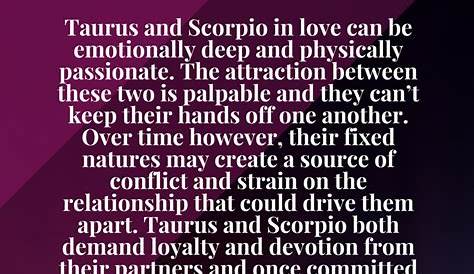 Оба знака известны своей сильной личностью и непоколебимой решимостью, что может сделать для мощного и интенсивного влечения. И мужчина-скорпион, и женщина-тавр имеют глубоко чувственную природу и оба. Сексуальное влечение с этими двумя чувственными, страстными знаками сходятся за чертой.