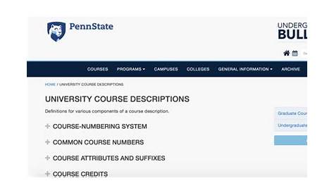Веб-сайт университетских бюллетеней является всеобъемлющим источником информации о состоянии университета и требованиях к программе. Бюллетень бакалавриата является всеобъемлющим источником штата Пенна для академической информации о состоянии студентов и требований к программе. Бюллетень университета является всеобъемлющим источником для академической информации о состоянии университета и требований к программам в штате Пенна. Программы предназначены для подготовки студентов к занятиям должностей.