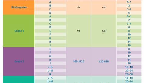 * График представляет собой текущее общее руководство для всех различных уровней и шкал, используемых в соответствующих программах чтения. После этого каждая полоса от коричневого до черного, является руководством для группы каждого года. Уровень лексики (или мера лексики) отражает способность студента читать по шкале и достигается путем анализа способности студента читать и понимать тексты.