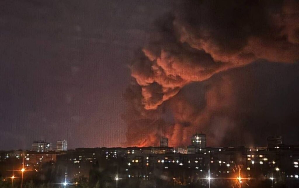 Масштабный пожар в временно оккупированном Донецке после ночной атаки дронов