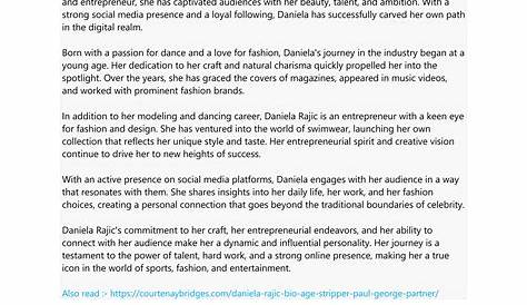 Даниэла Раджич бросила работу стриптизёрши и продолжила карьеру модели и танцовщицы. В этой статье мы углубимся в жизнь и карьеру. Она предприниматель, которая управляет своим брендом купальников. Даниэла Раджич — бывшая танцовщица колен, танцовщица, икона моды, бизнесвумен и личность в социальных сетях.