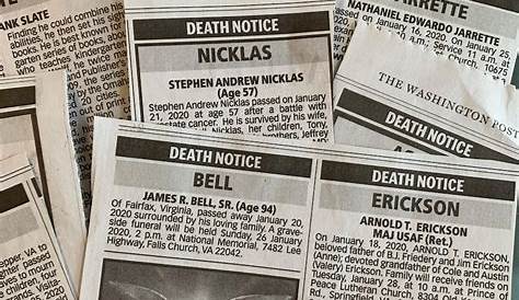 В разделе некрологов пост-вашингтона есть некрологы Вашингтон д.к., Мэриленд и Вирджиния, оценки и уведомления о смерти, а также исторические некрологи и знаменитости.
