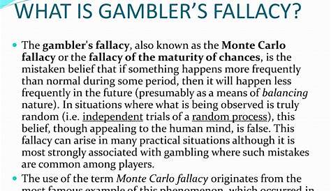 Не тот вопрос, который вы ищете? Задайте любой вопрос и быстро получите помощь эксперта. Ошибка игрока, также известная как ошибка монте-карло (потому что ее самый известный пример произошел в казино монте-карло в 1913 году) или ошибка зрелости шансов, является ошибкой.